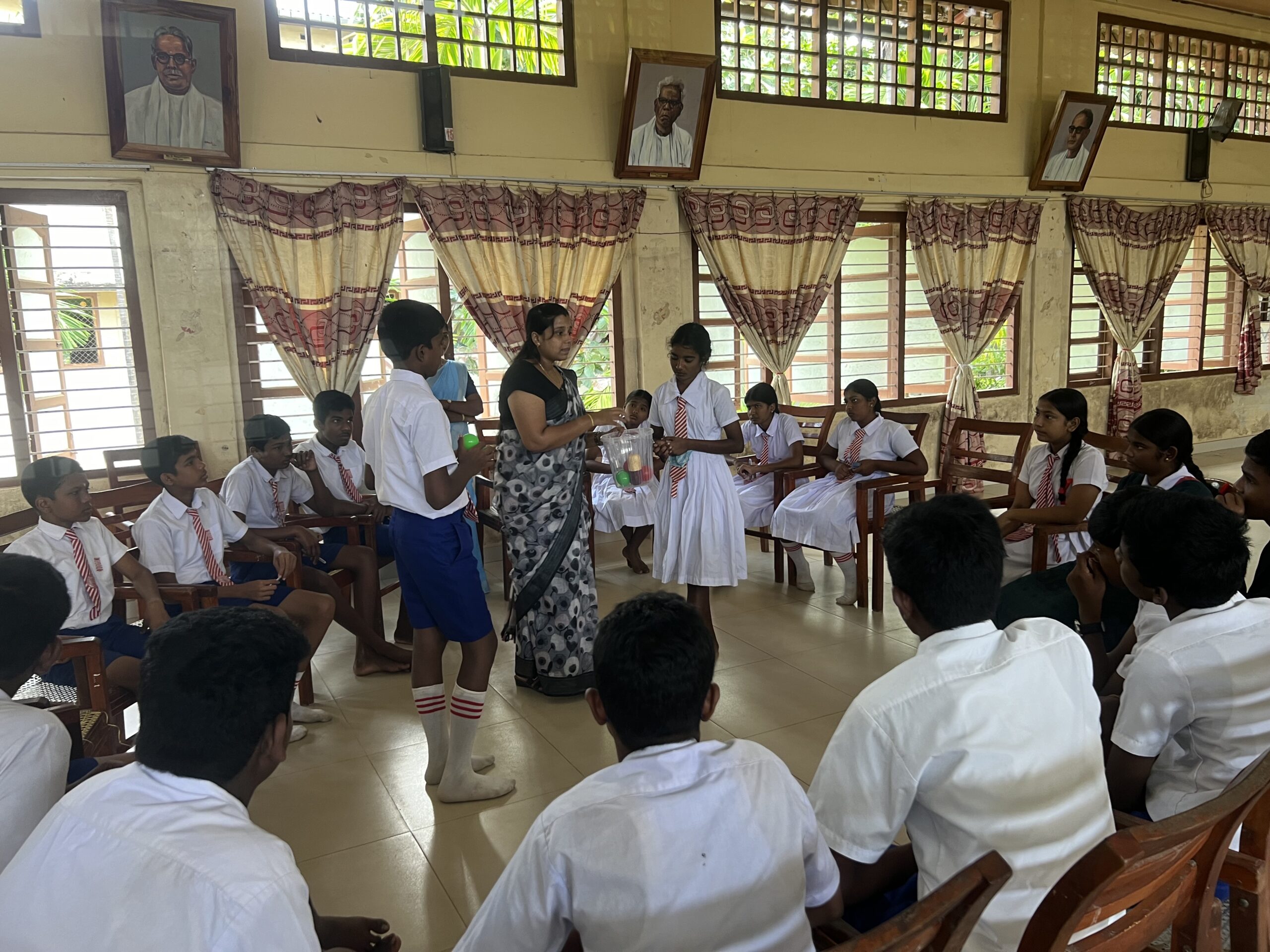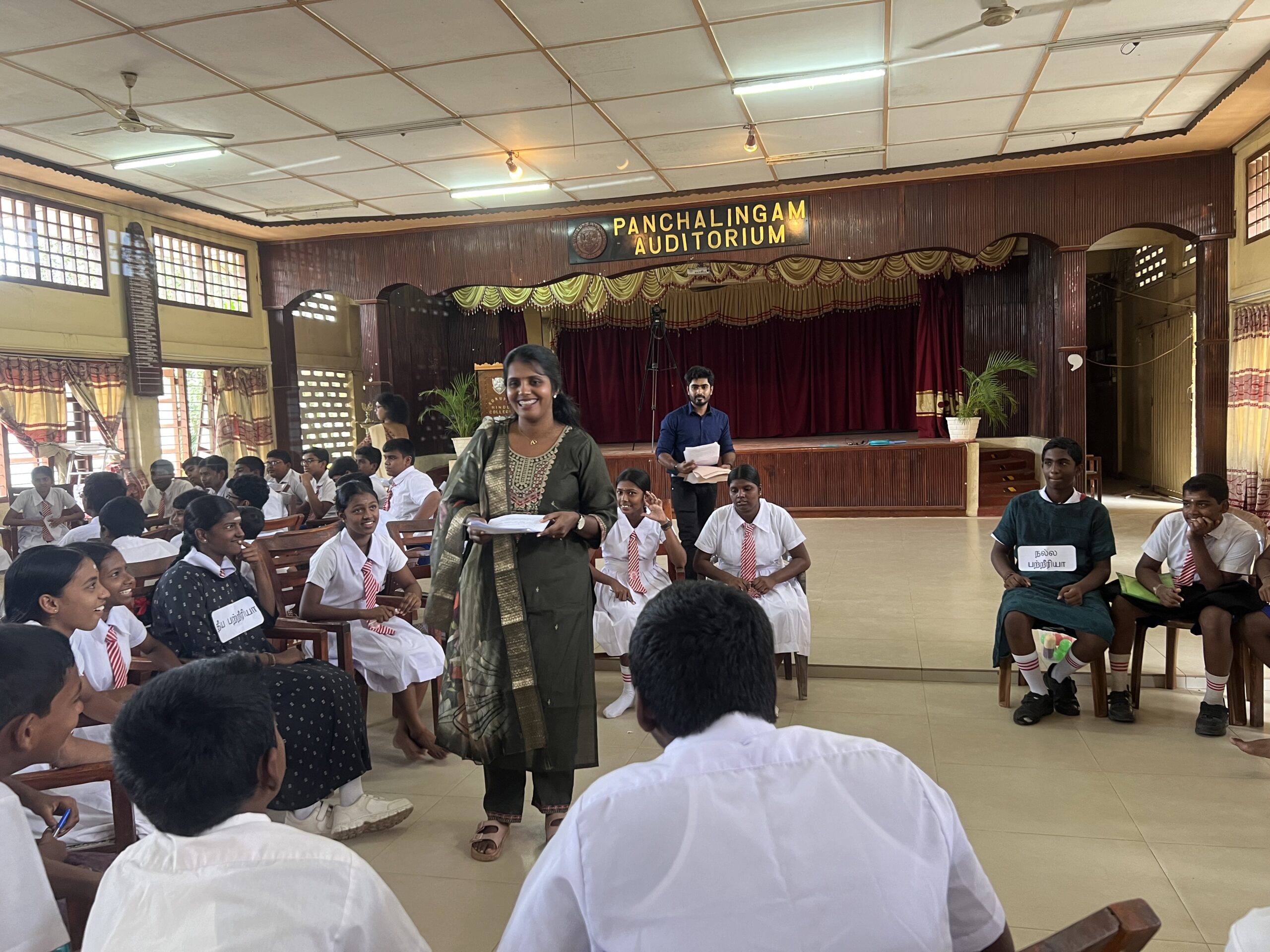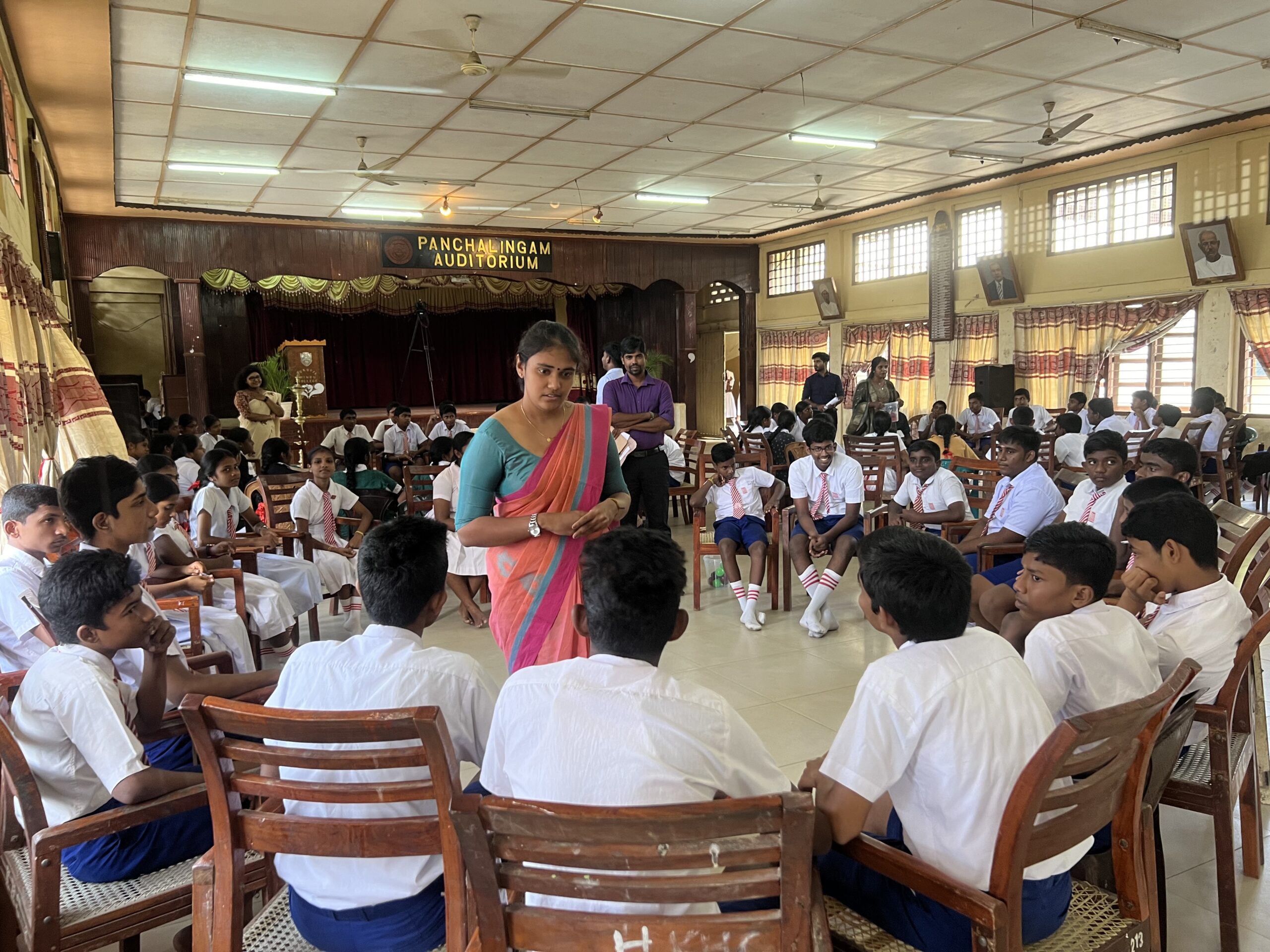 The programme was conducted from 8.00 am onwards for about 1 ½ hours per group. Hundred and seventy students participated. A pretest was done at the beginning, followed by an interactive discussion session in small groups of around 15-20 students in each, role play by the students of Kokuvil Hindu College (who were trained by the department staff previously) and a posttest.