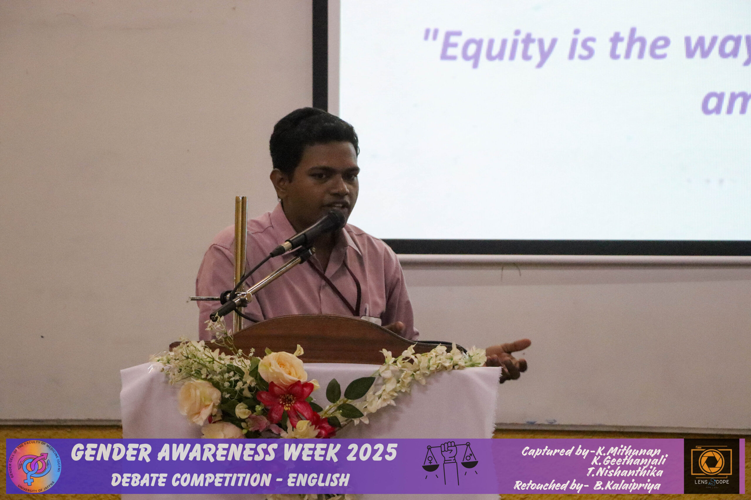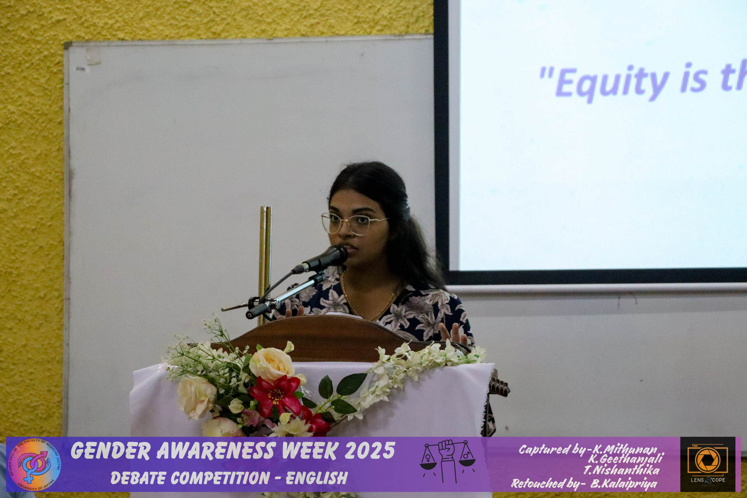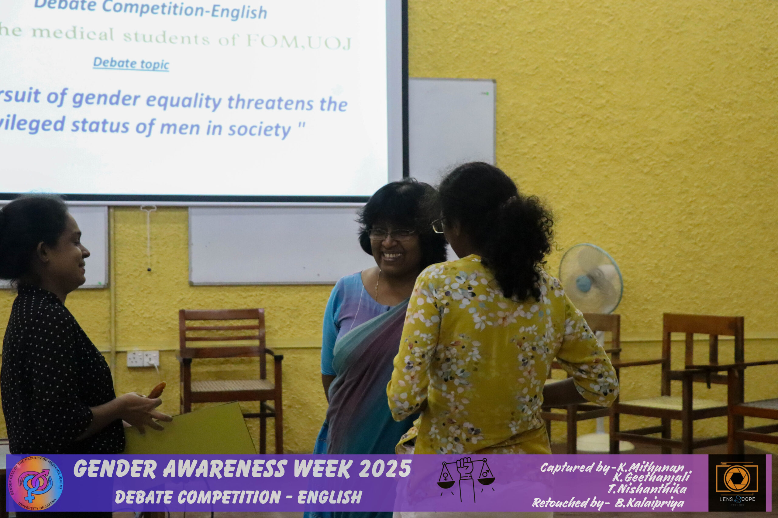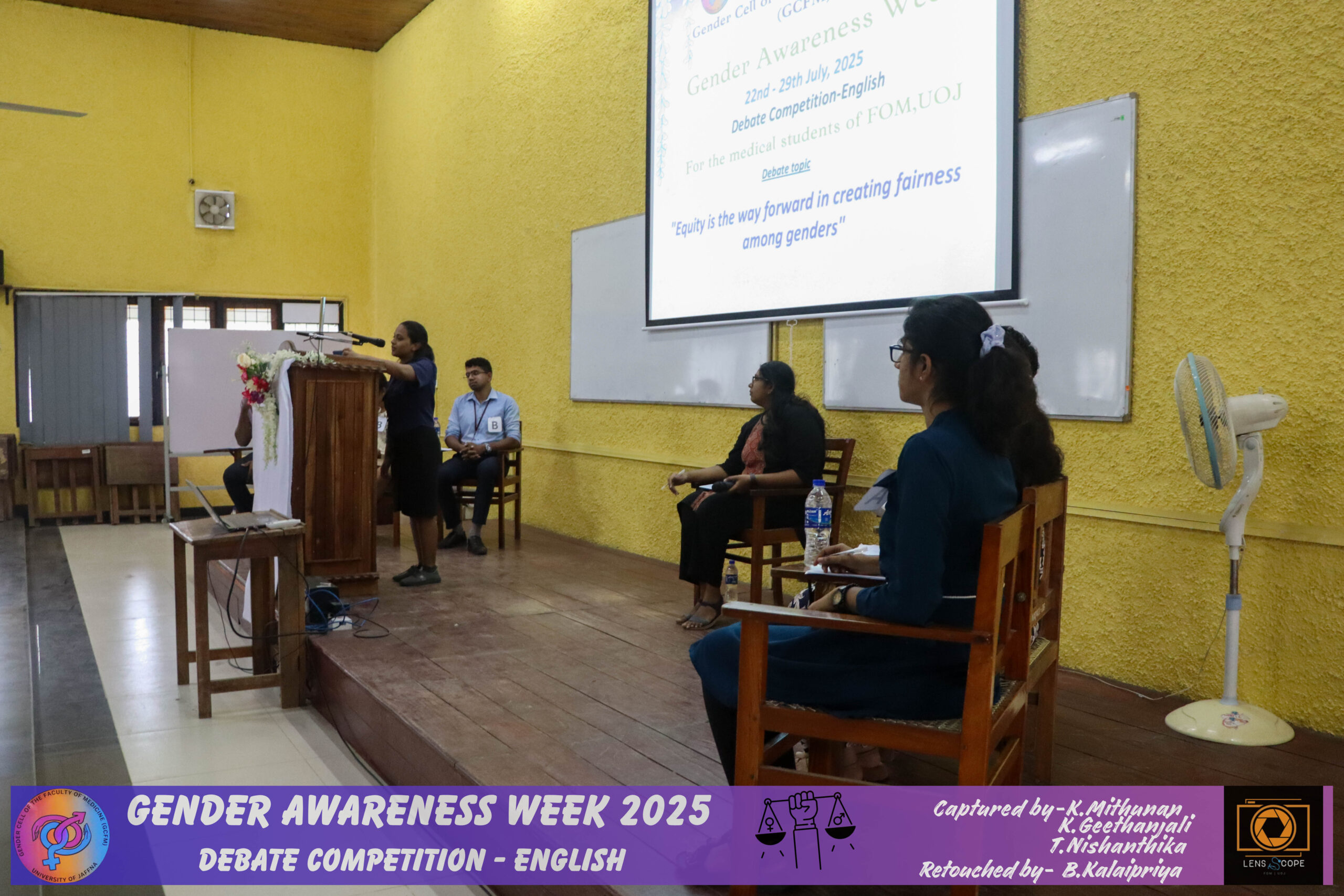 In view of improving awareness regarding gender issues and the need for gender equality and equity among the students of this faculty, the student wing of the Gender Cell of the Faculty of Medicine (GCFM), University of Jaffna, successfully conducted a gender awareness week for the students in the theme of ‘Redefining Norms, Redeeming Equality’ with the support of the GCFM staff members.