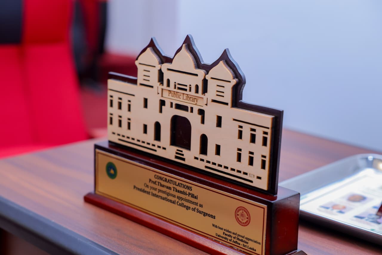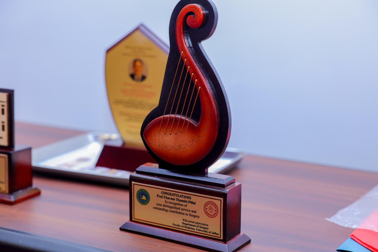 To mark this memorable event, mementos were presented to Prof. Thavam Thambi-Pillai by the Faculty of Medicine, Department of Surgery, International College of Surgeons-Sri Lanka Chapter and the Teaching Hospital Jaffna.
